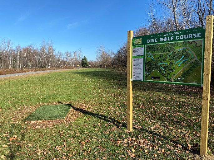 Williston Community Park | Williston Road, in the Village, behind Williston Central School | 21 | 2 full-size multi-use fields, 3 small soccer fields, 1 full-size baseball field, 1 little league baseball field, 1 softball field, basketball court, 2 tennis courts, 4 volleyball courts, a multi-use skating rink/skate park, 12-hole disc golf course, multi-age and toddler playground, public bathrooms w/concession area and warming hut. Allen Brook Nature Trail (0.5 mi), Village Bike Path (1.3 mi) |